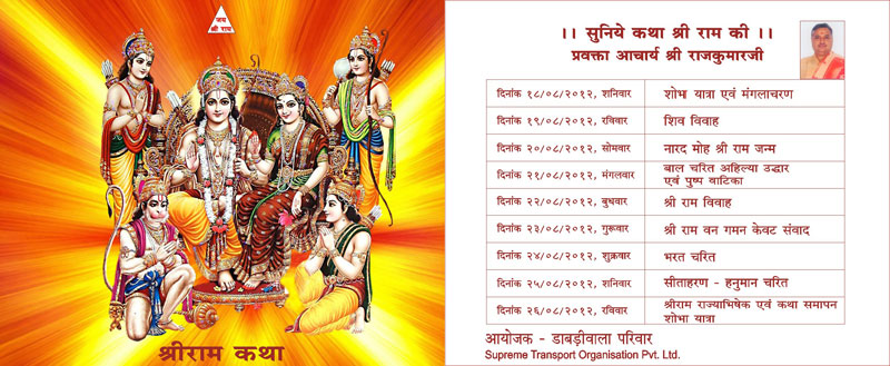 BHAGVAD Katha, Shree RAM Katha, Religious Bhajans and events – ALL ACROSS INDIA